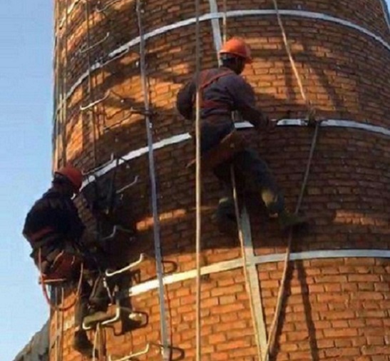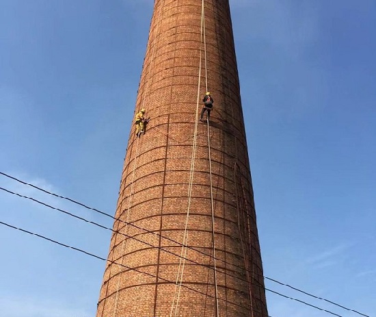 (3)制止站立或蹲在煙囪維修壁上停止支配,假設(shè)壁厚超越2磚(62cm)而必需站在壁上支配時,則必需扣掛好安全帶,本地?zé)焽杈S修施工單位。