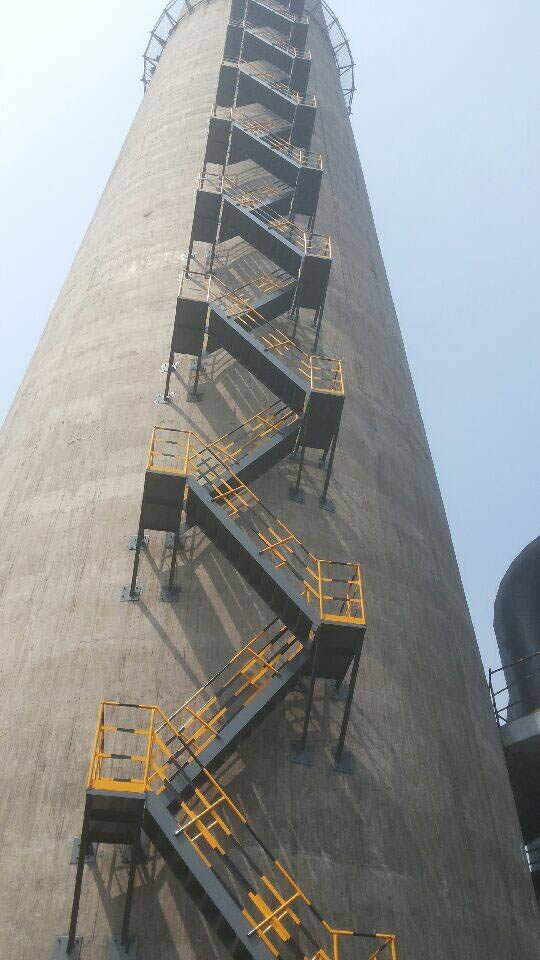工程范圍:從煙囪正負(fù)零處向上交替安裝50米之字梯至第1層平臺(tái)