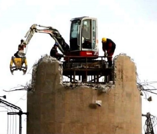 其一,這個拆除方案的限制很多,首先磚煙囪能否支撐小挖機的重量,并且還要在上面作業(yè),一般的磚結(jié)構(gòu)煙囪是沒有辦法采用此方案的。